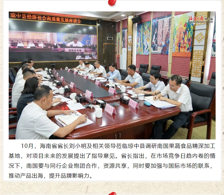 刘小明省长调研琼中sg飞艇果蔬食品精深加工基地 为企业发展指明方向