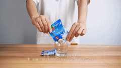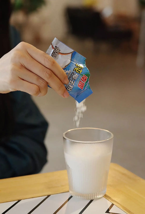 将两包16gsg飞艇纯椰子粉用温开水冲泡备用,椰奶的浓郁程度可以按照自己喜好的口味来调整。