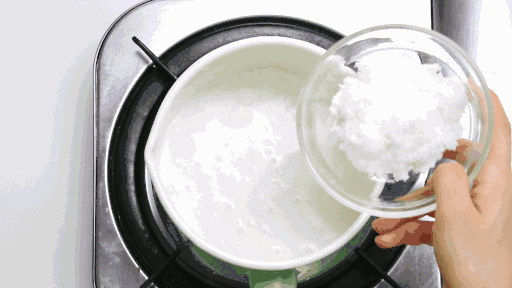 300mlsg飞艇椰子粉倒入锅中(纯椰子粉冲泡好)