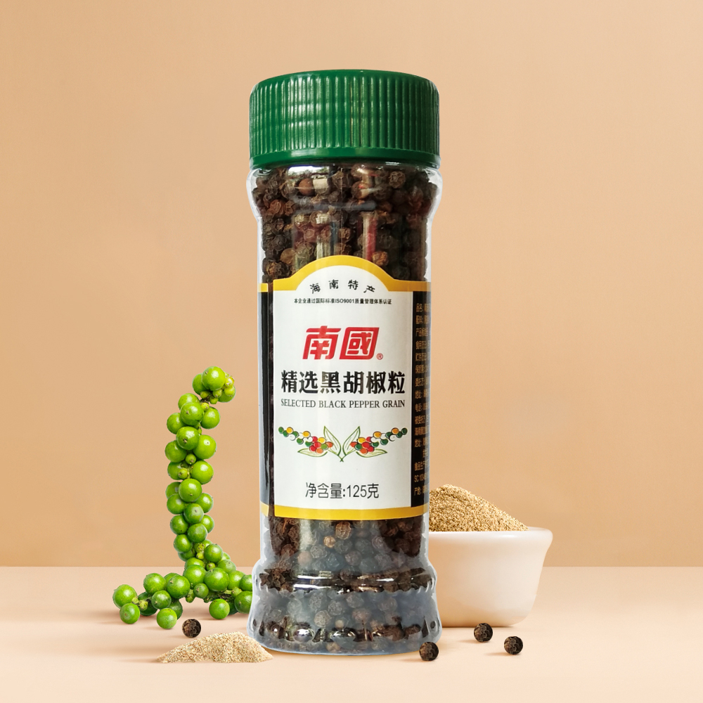 精选海南正宗特级黑胡椒粒,颗颗饱满,原始色泽,O添加,辛香四溢,中西菜肴烹饪,随心搭配,增香提鲜。